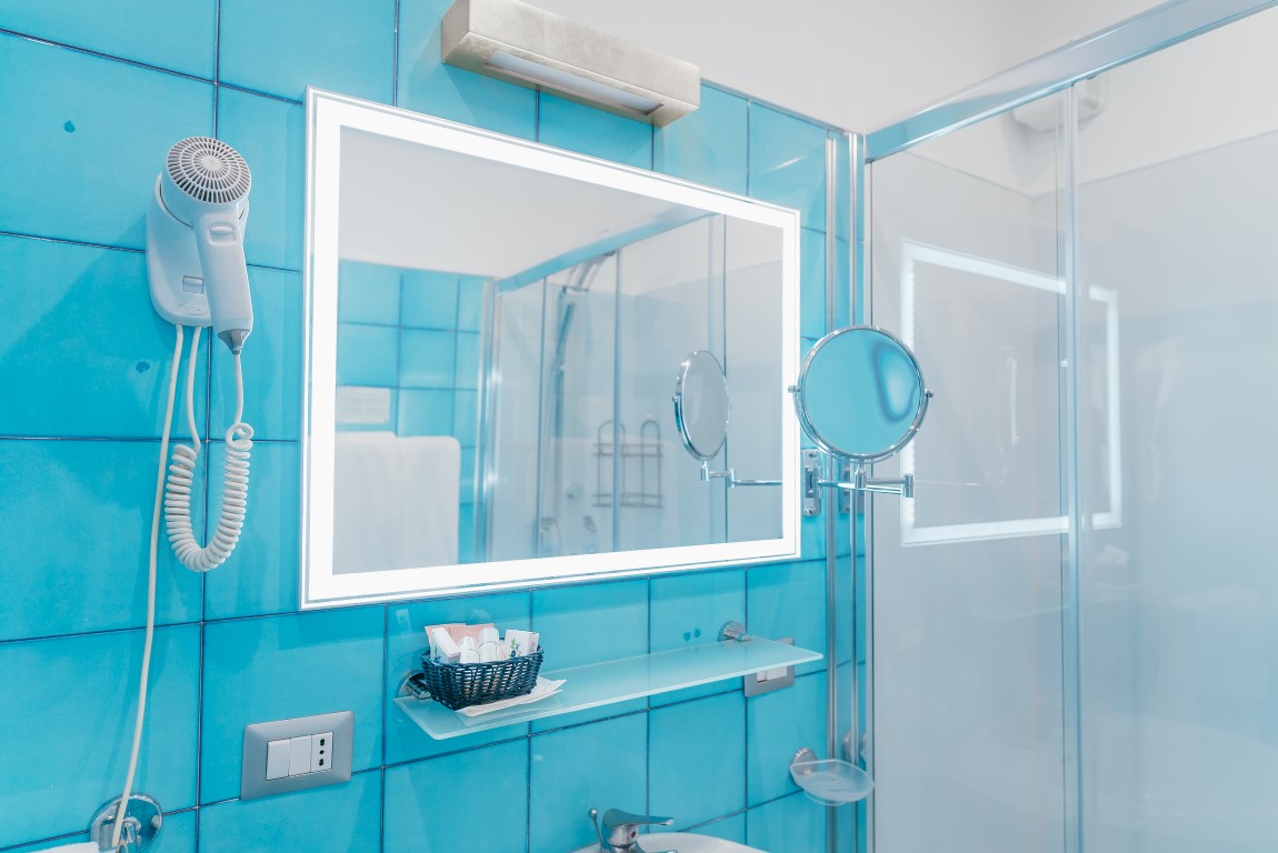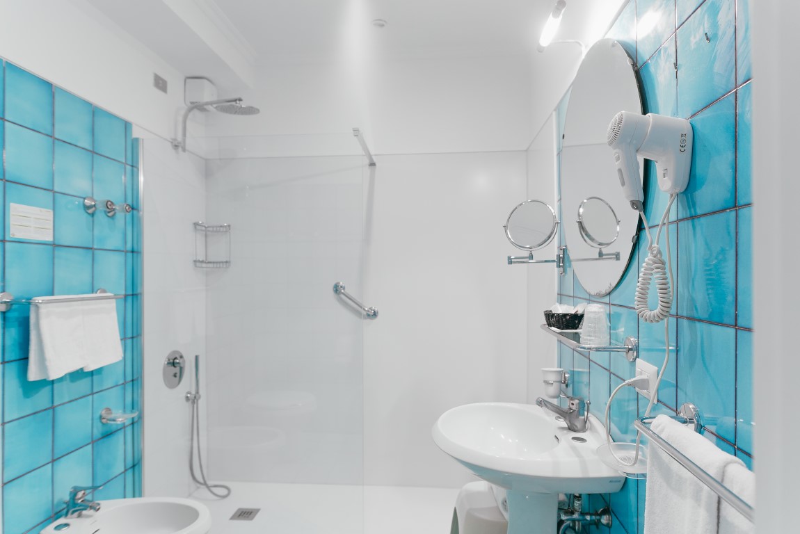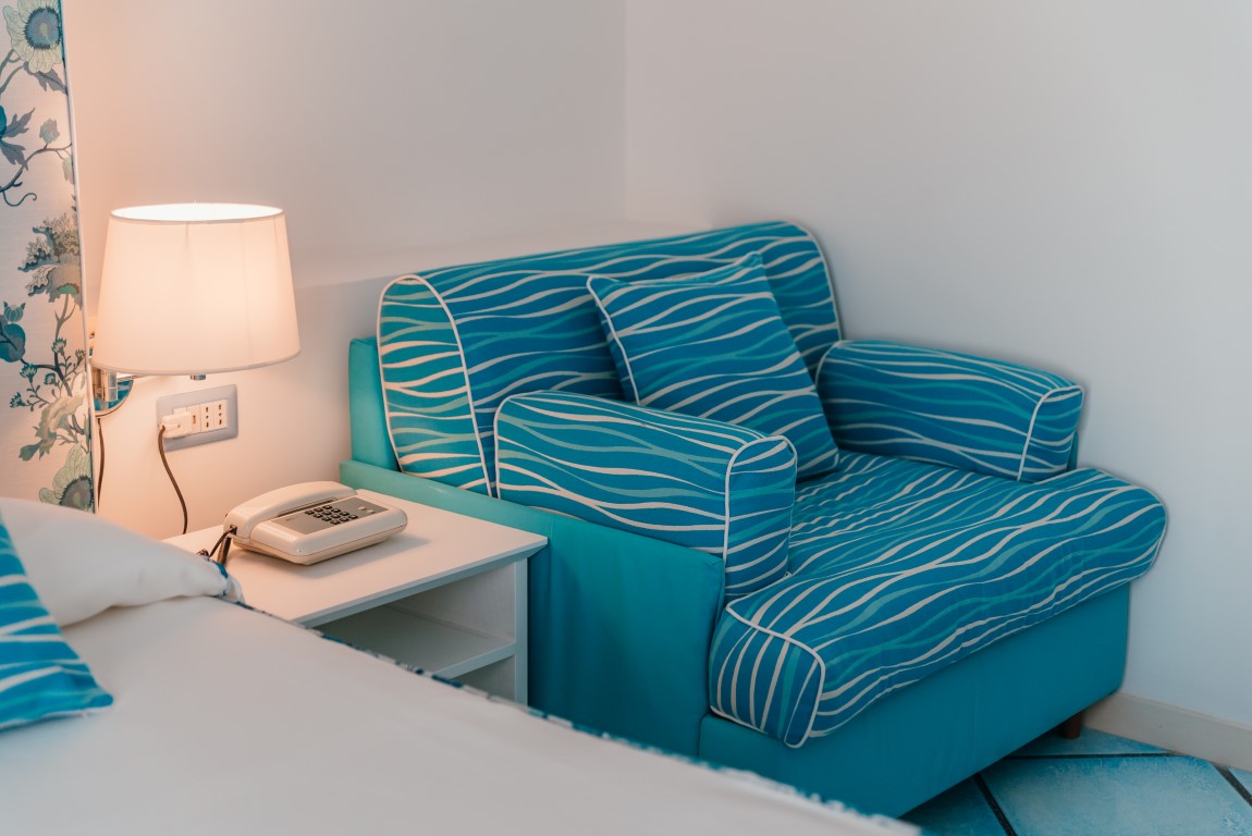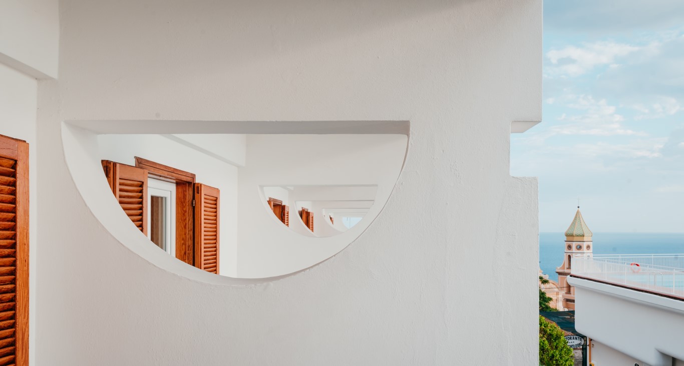 The 14 Rooms are decorated in a modern and essential style. They are spacious bright with a blue floor like the colour of the sky and the sea. Seven of the rooms have a full sea view terrace overlooking the Li Galli Island Positano and I Faraglioni di Capri.