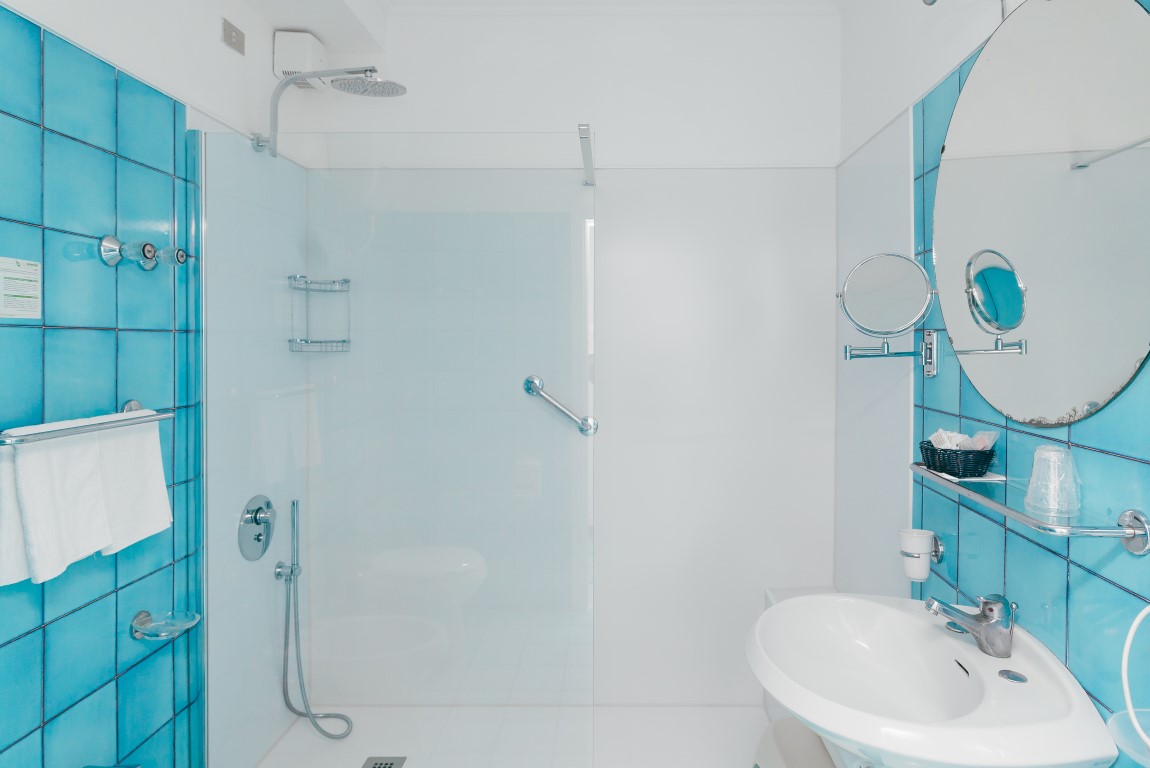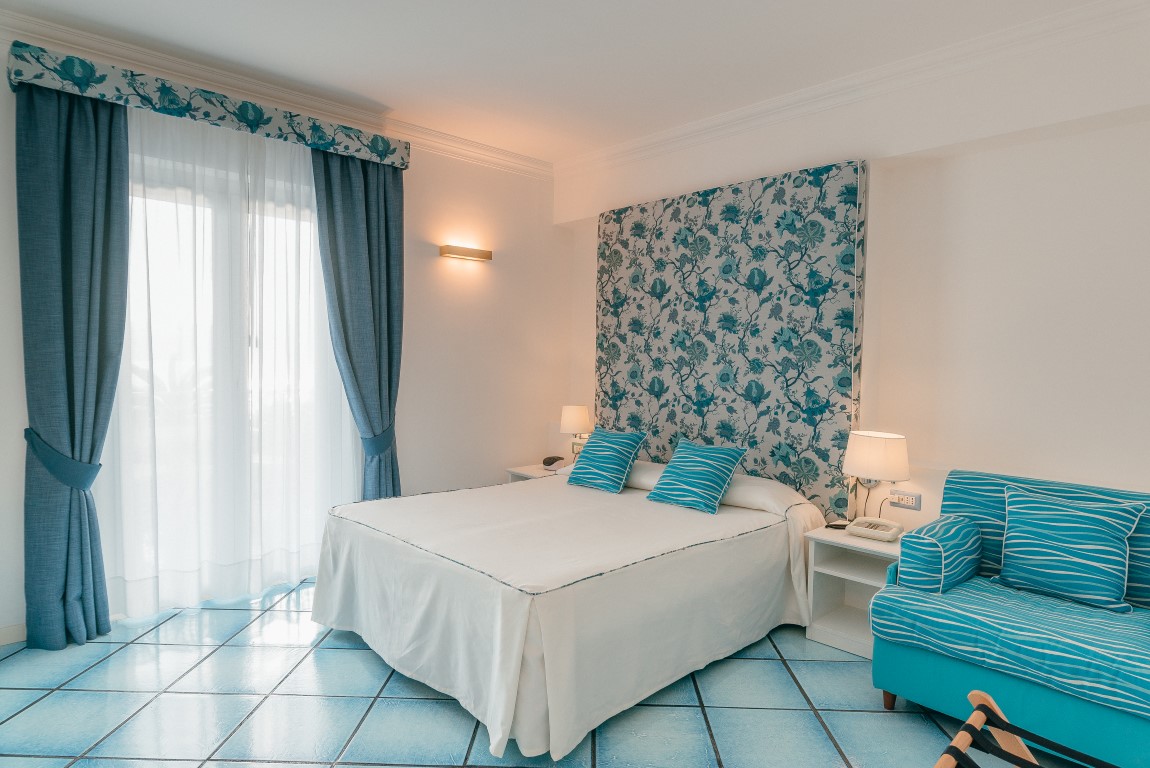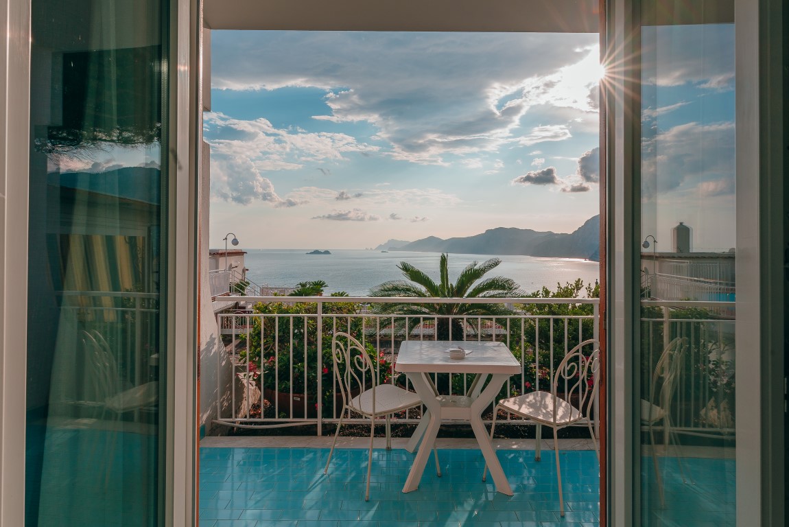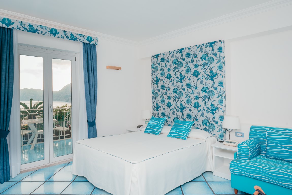 The 14 Rooms are decorated in a modern and essential style. They are spacious bright with a blue floor like the colour of the sky and the sea. Seven of the rooms have a full sea view terrace overlooking the Li Galli Island Positano and I Faraglioni di Capri.